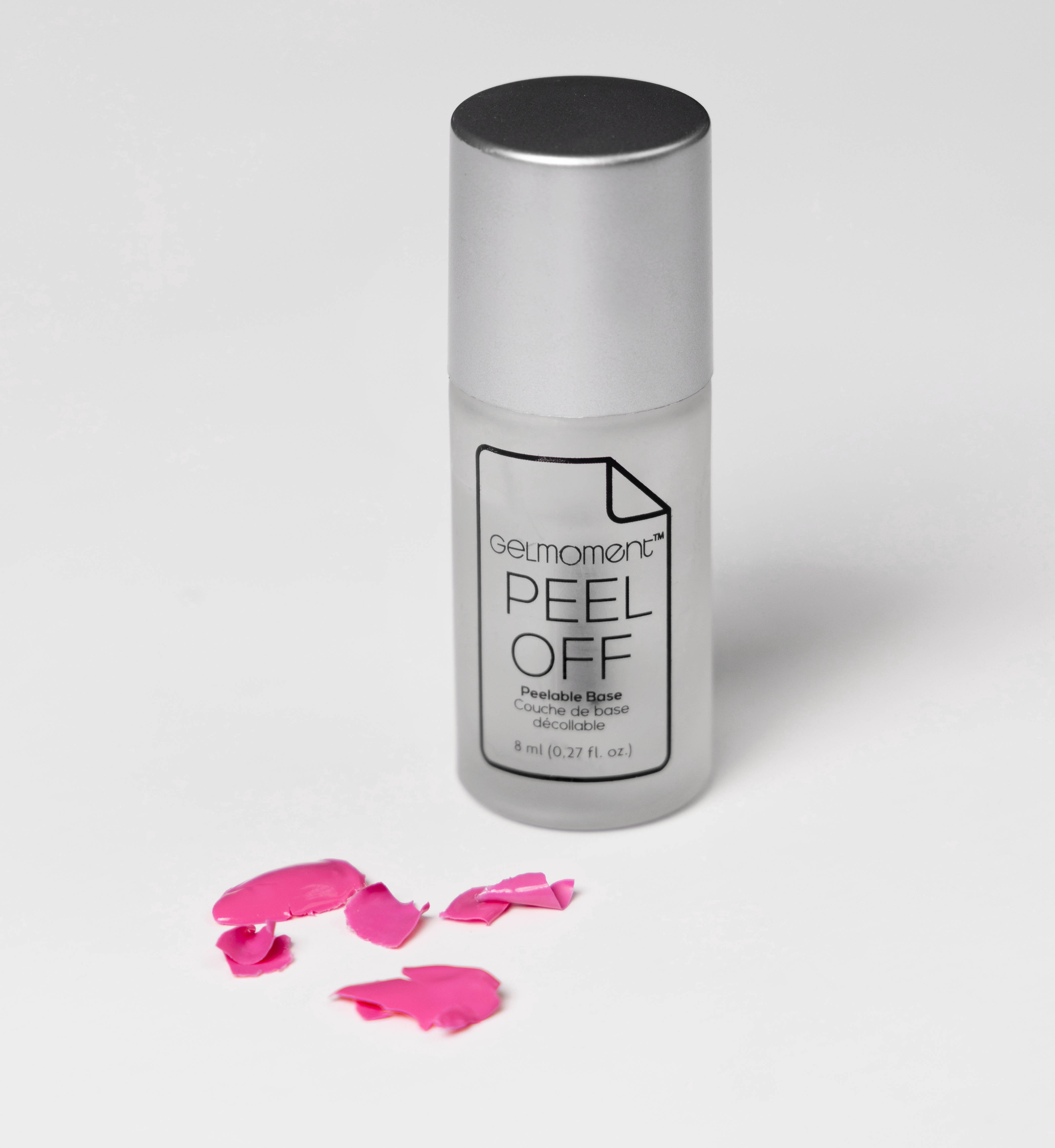 • Gently peel off when it’s fully dry, with a GelMoment Cuticle Pusher by gently  lifting the polish from just above the cuticle.